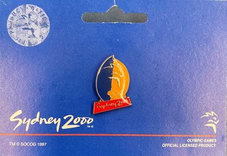 Made from woven polyester, orange in colour with white screenprinted "Sydney 2000" wording.